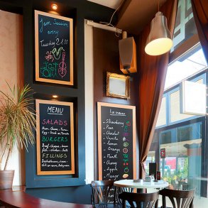 Bestem deg nå for den krittavlen eller skiferplaten som best kombinerer dine ønsker. Enten som værbestandig reklametavle for utendørs bruk, eller som tavle som display eller som plakatstativ.