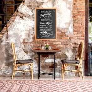 La oss starte med uteområdet. Her finner du barrierer som ikke bare bidrar til gjestenes sikkerhet. Understrek atmosfæren i restauranten din med stil med produktene våre. Fortausstandere og gulvutstillinger er uunnværlige elementer for å skape en koselig atmosfære og invitere gjestene dine til å bli værende.