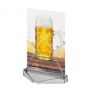 Stativet er laget av akryl, tre eller aluminium og beskytter utskriftene dine mot våte overflater. En akrylglasspose eller et hardt filmdeksel beskytter innholdet mot ytre påvirkninger. Dette betyr at innleggene kan brukes om og om igjen, noe som sparer deg for unødvendige utskrifter.