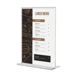 Menyholdere er vanligvis klassiske T-stativer. Du kan få kortholderne i DIN-formater fra DIN A4 til DIN A6. Ulike retninger er tilgjengelige. I liggende eller stående format tilpasser varene seg perfekt til menyen eller utskriftene dine.