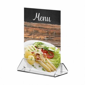 Det bredeste utvalget av menyholdere med høy kvalitet og flott design er perfekt for en attraktiv presentasjon av menyer og spesialtilbud. Menyholdere sørger for at menyene er godt beskyttet av gjennomsiktig plast. De med en trebase gir en "naturlig" presentasjon, mens de med en elegant aluminiumsfot passer sømløst inn i alle typer interiør.