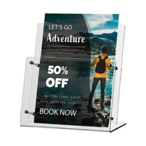 Brosjyreholdere for bord og disk, som følger de alminnelige DIN-standardformatene, er primært produsert av materialer som akryl, polystyren eller hard PVC. Vårt sortiment inkluderer et vidt utvalg av modeller som er tilpasset standardstørrelsene A4, A5, A6, A7 og 1/3 A4 (DIN lang). Se også vårt utvalg for Vegg